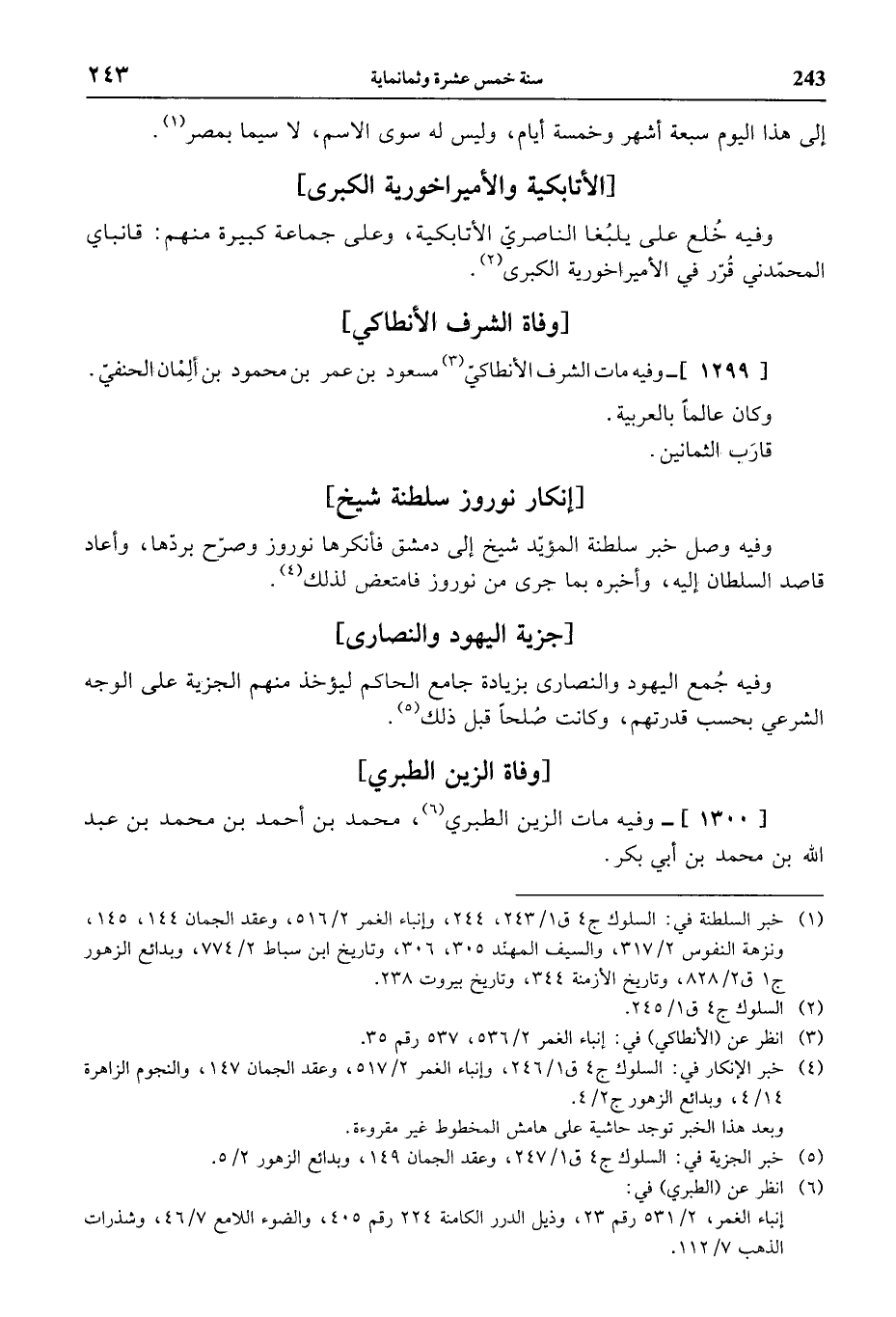 (¬5) خبر الجزية في: السلوك ج 4 ق 1/ 247، وعقد الجمان 149، وبدائع الزهور 2/ 5.