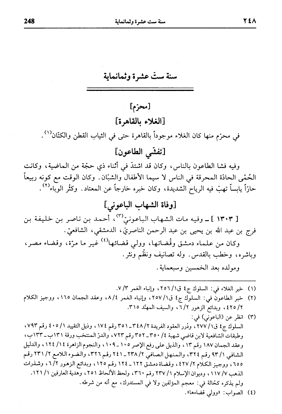 (¬2) خبر الطاعون في: السلوك ج 4 ق 1/ 257، وإنباء الغمر 4/ 8، وعقد الجمان 165، ووجيز الكلام 2/ 425، وبدائع الزهور 2/ 6، والسيف المهنّد 315.