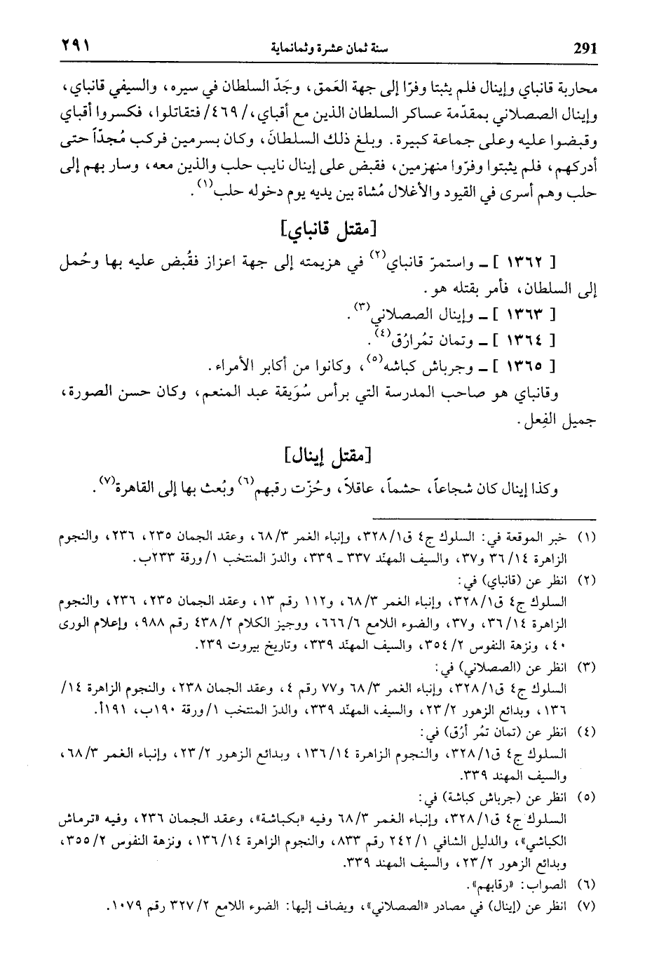 (¬7) انظر عن (إينال) في مصادر «الصصلاني»، ويضاف إليها: الضوء اللامع 2/ 327 رقم 1079.