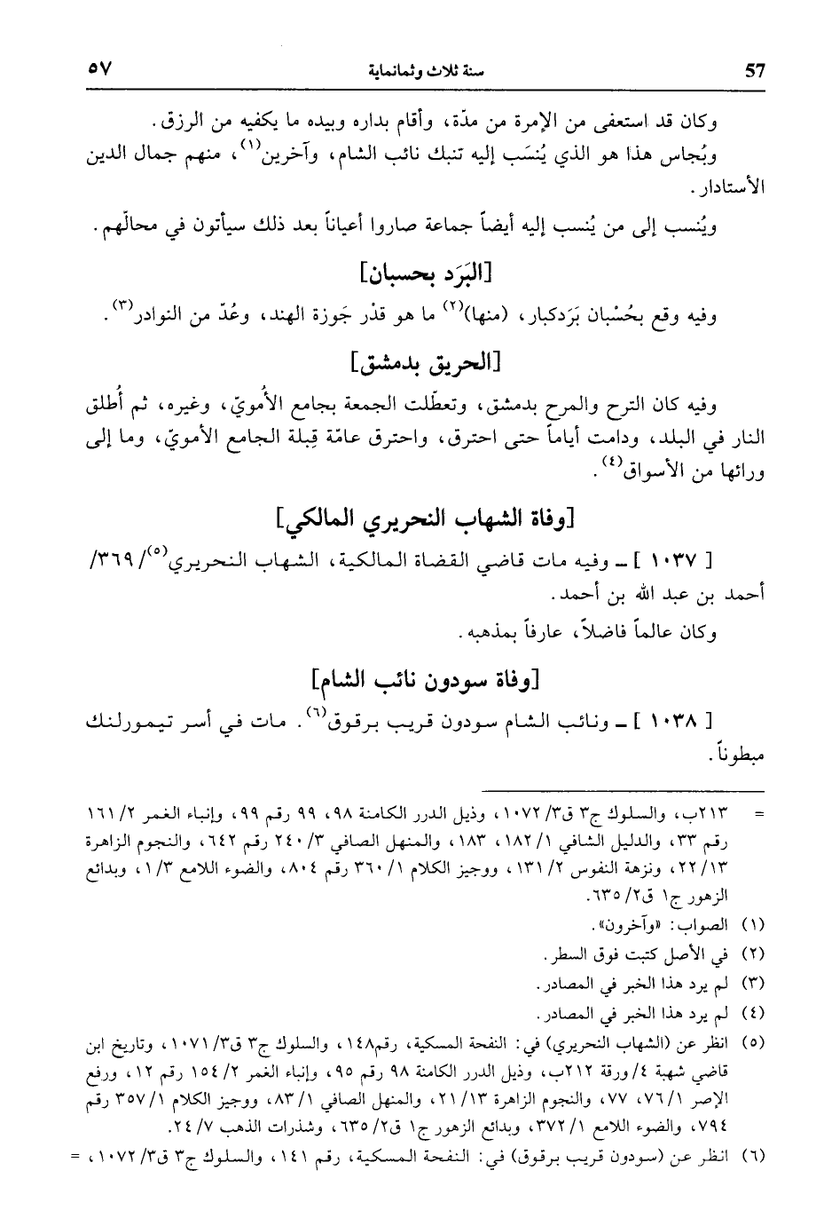 (¬5) انظر عن (الشهاب النحريري) في: النفحة المسكية، رقم 148، والسلوك ج 3 ق 3/ 1071، وتاريخ ابن قاضي شهبة 4 / ورقة 212 ب، وذيل الدرر الكامنة 98 رقم 95، وإنباء الغمر 2/ 154 رقم 12، ورفع الإصر 1/ 76، 77، والنجوم الزاهرة 13/ 21، والمنهل الصافي 1/ 83، ووجيز الكلام 1/ 357 رقم 794، والضوء اللامع 1/ 372، وبدائع الزهور ج 1 ق 2/ 635، وشذرات الذهب 7/ 24.