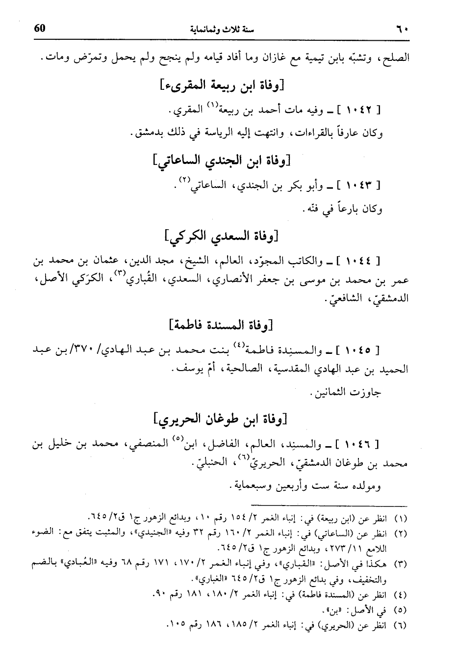 (¬4) انظر عن (المسندة فاطمة) في: إنباء الغمر 2/ 180، 181 رقم 90.