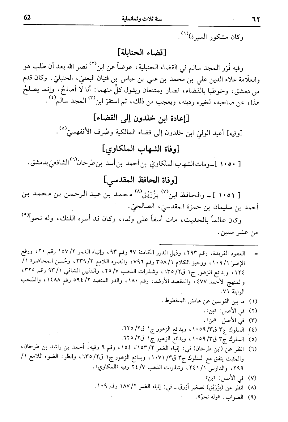 (¬6) انظر عن (ابن طرخان) في: إنباء الغمر 2/ 153، 154، رقم 9 وفيه: أحمد بن راشد بن طرخان، والمثبت يتفق مع السلوك ج 3 ق 3/ 1071، وبدائع الزهور ج 1 ق 2/ 635، وانظر: الضوء اللامع 1/ 299، والدارس 1/ 241، وشذرات الذهب 7/ 24 وفيه «المكاوي».