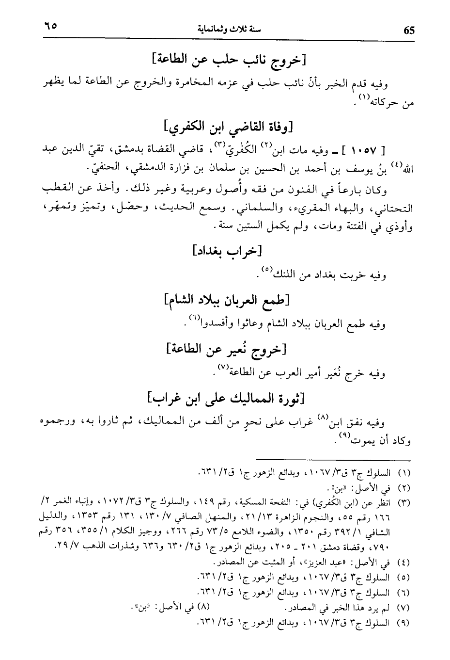 (¬3) انظر عن (ابن الكفري) في: النفحة المسكية، رقم 149، والسلوك ج 3 ق 3/ 1072، وإنباء الغمر 2/ 166 رقم 55، والنجوم الزاهرة 13/ 21، والمنهل الصافي 7/ 130، 131 رقم 1353، والدليل الشافي 1/ 392 رقم 1350، والضوء اللامع 5/ 73 رقم 266، ووجيز الكلام 1/ 355، 356 رقم 790، وقضاة دمشق 201 - 205، وبدائع الزهور ج 1 ق 2/ 630 و 636 وشذرات الذهب 7/ 29.