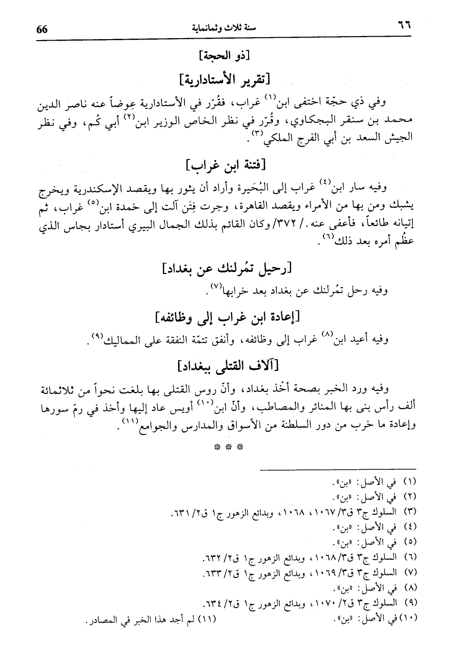 (¬6) السلوك ج 3 ق 3/ 1068، وبدائع الزهور ج 1 ق 2/ 632.