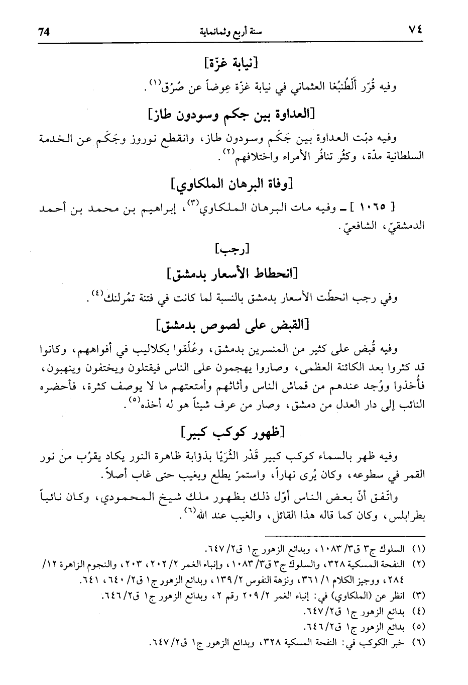 (¬6) خبر الكوكب في: النفحة المسكية 328، وبدائع الزهور ج 1 ق 2/ 647.