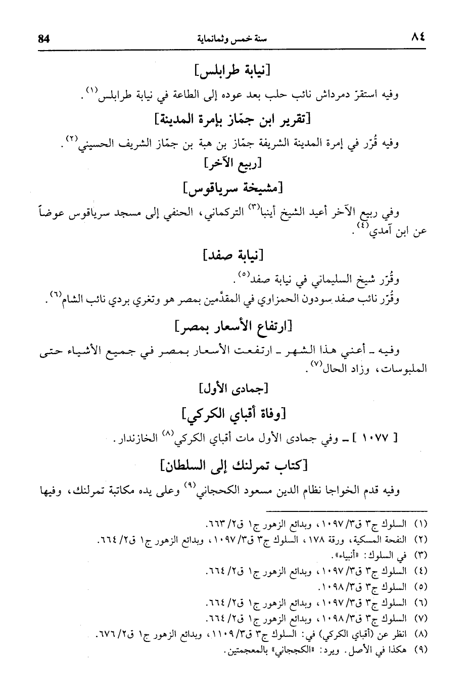 (¬4) السلوك ج 3 ق 3/ 1097، وبدائع الزهور ج 1 ق 2/ 664.
