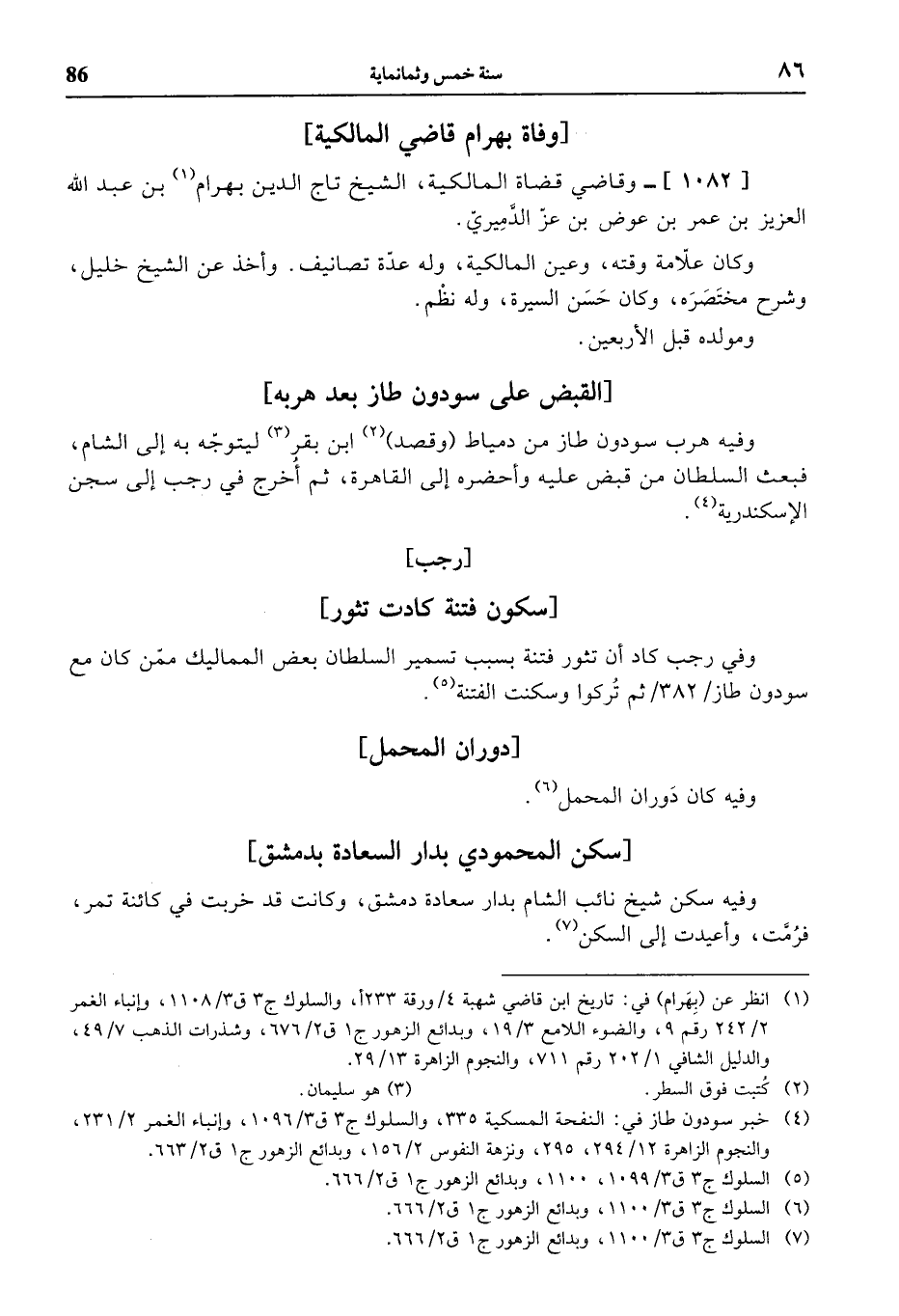(¬1) انظر عن (بهرام) في: تاريخ ابن قاضي شهبة 4 / ورقة 233 أ، والسلوك ج 3 ق 3/ 1108، وإنباء الغمر 2/ 242 رقم 9، والضوء اللامع 3/ 19، وبدائع الزهور ج 1 ق 2/ 676، وشذرات الذهب 7/ 49، والدليل الشافي 1/ 202 رقم 711، والنجوم الزاهرة 13/ 29.