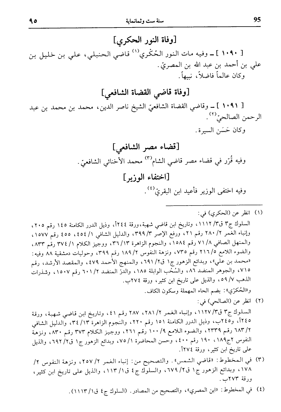 (¬2) انظر عن (الصالحي) في: السلوك ج 3 ق 3/ 1127، وإنباء الغمر 2/ 281، 287 رقم 41، وتاريخ ابن قاضي شهبة، ورقة 245 أ، و 245 ب، وذيل الدرر الكامنة 151 رقم 220، والنجوم الزاهرة 13/ 34، والدليل الشافي 2/ 683 رقم 2339، والضوء اللامع 9/ 100 رقم 261، ووجيز الكلام 373 رقم 830، ونزهة النفوس 2 ج 189، 190 رقم 400، وحسن المحاضرة 1/ 75، وبدائع الزهور ج 1 ق 2/ 692، والذيل على تاريخ ابن كثير، ورقة 274 أ.