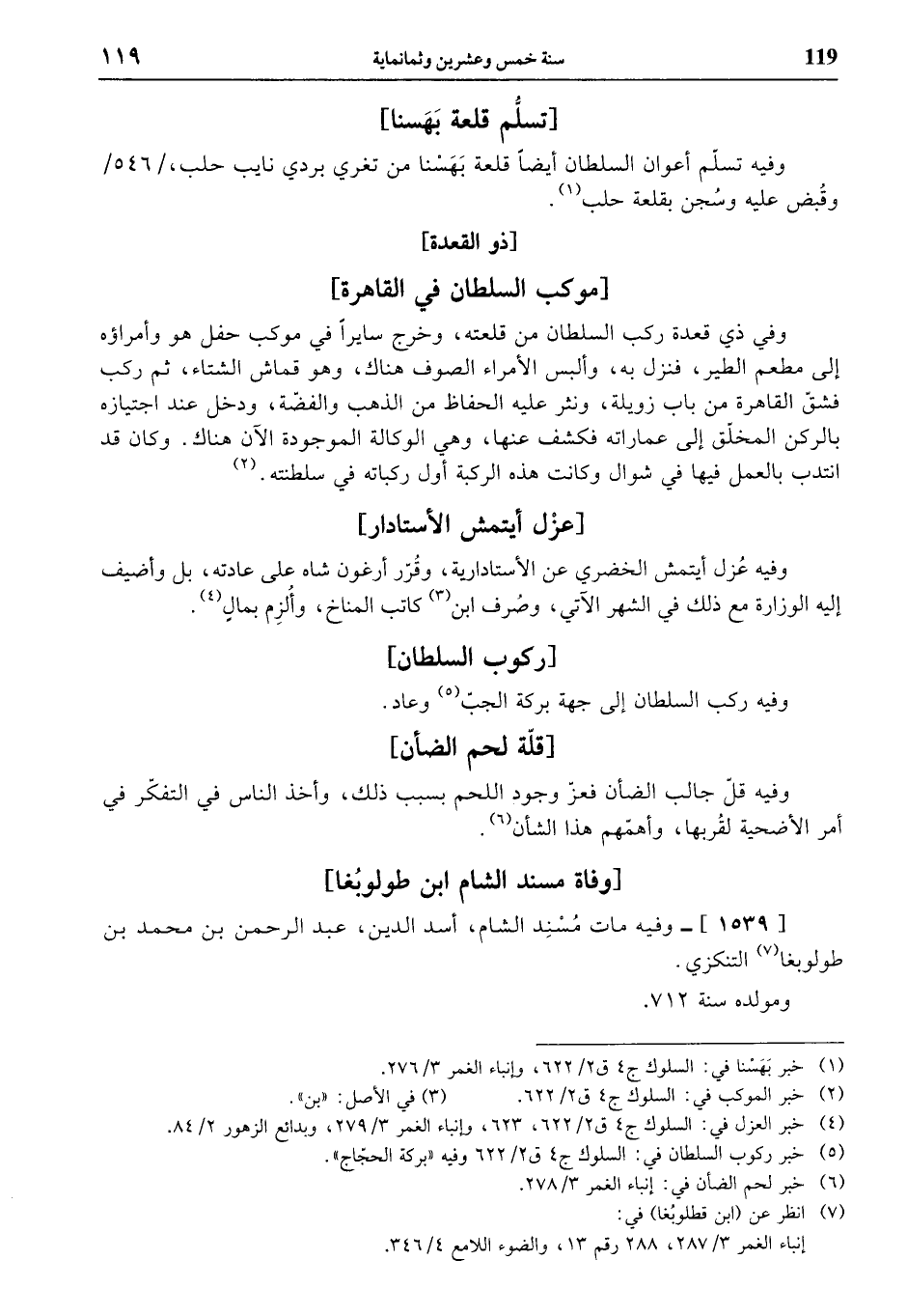 (¬1) خبر بهسنا في: السلوك ج 4 ق 2/ 622، وإنباء الغمر 3/ 276.