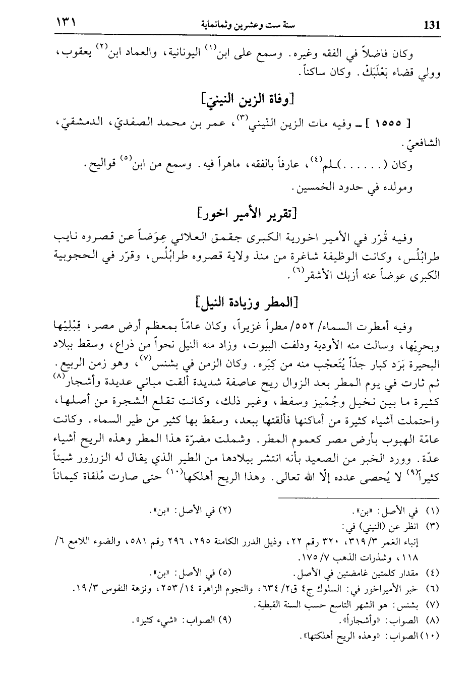 (¬3) انظر عن (النيني) في: إنباء الغمر 3/ 319، 320 رقم 22، وذيل الدرر الكامنة 295، 296 رقم 581، والضوء اللامع 6/ 118، وشذرات الذهب 7/ 175.