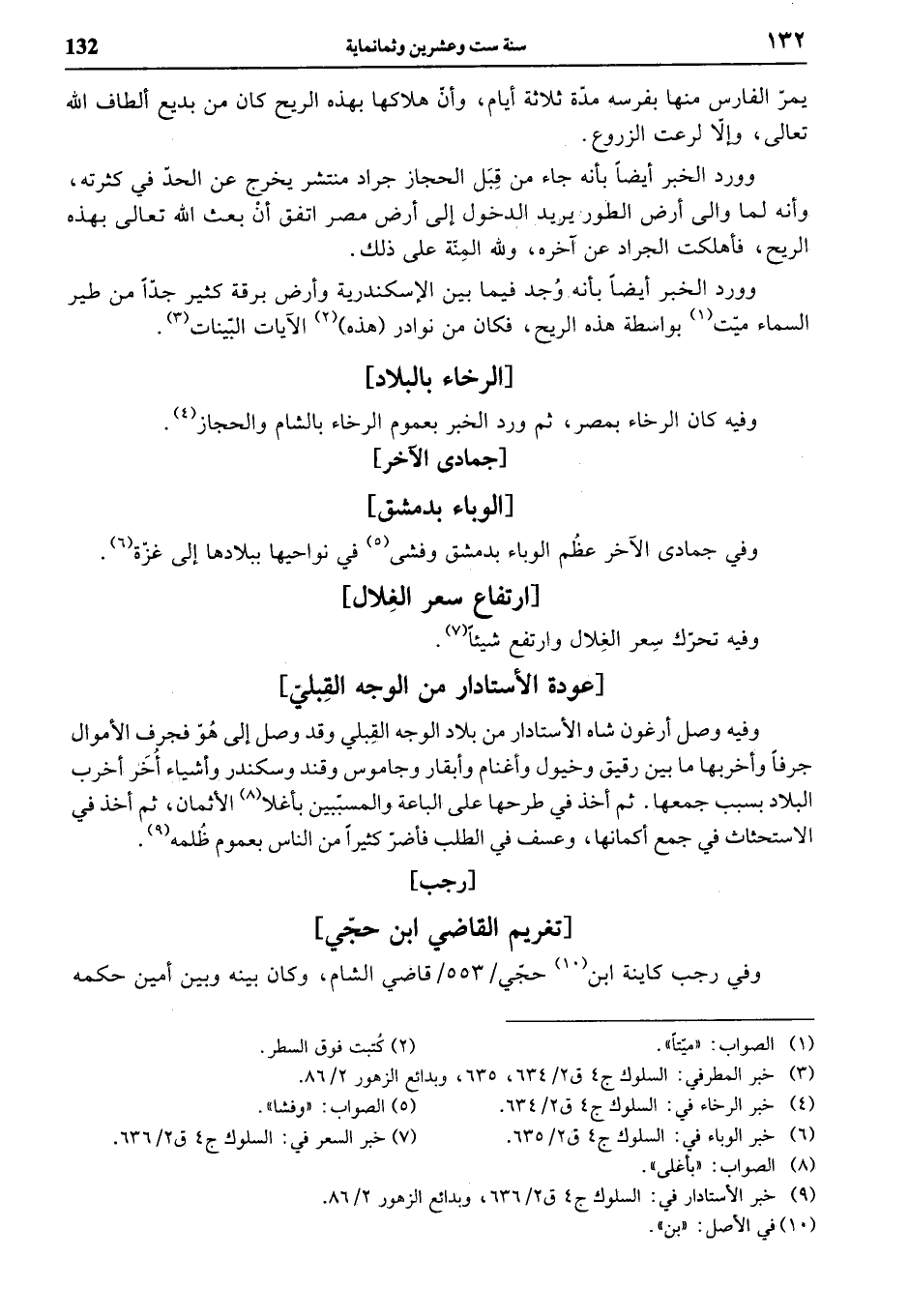 وفيه كان الرخاء بمصر، ثم ورد الخبر بعموم الرخاء بالشام والحجاز (¬4).