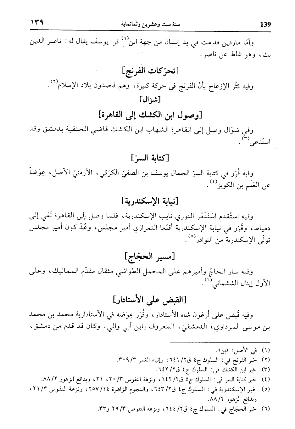 (¬6) خبر الحجّاج في: السلوك ج 4 ق 2/ 644، ونزهة النفوص 3/ 29 و 33.
