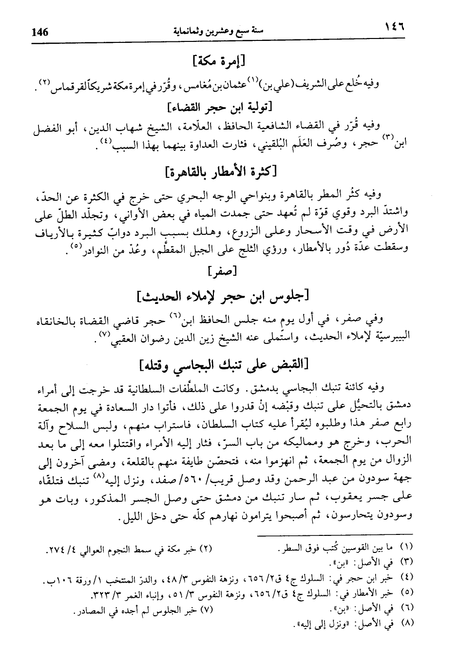 (¬5) خبر الأمطار في: السلوك ج 4 ق 2/ 656، ونزهة النفوس 3/ 51، وإنباء الغمر 3/ 323.