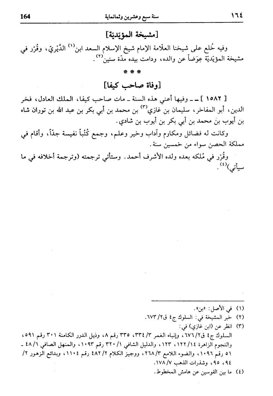 [1582]- وفيها أعني هذه السنة - مات صاحب كيفا، الملك العادل، فخر الدين، أبو المفاخر، سليمان بن غازي (¬3) بن محمد بن أبي بكر بن عبد الله بن توران شاه بن أيوب بن محمد بن أبي بكر بن أيوب بن شادي.