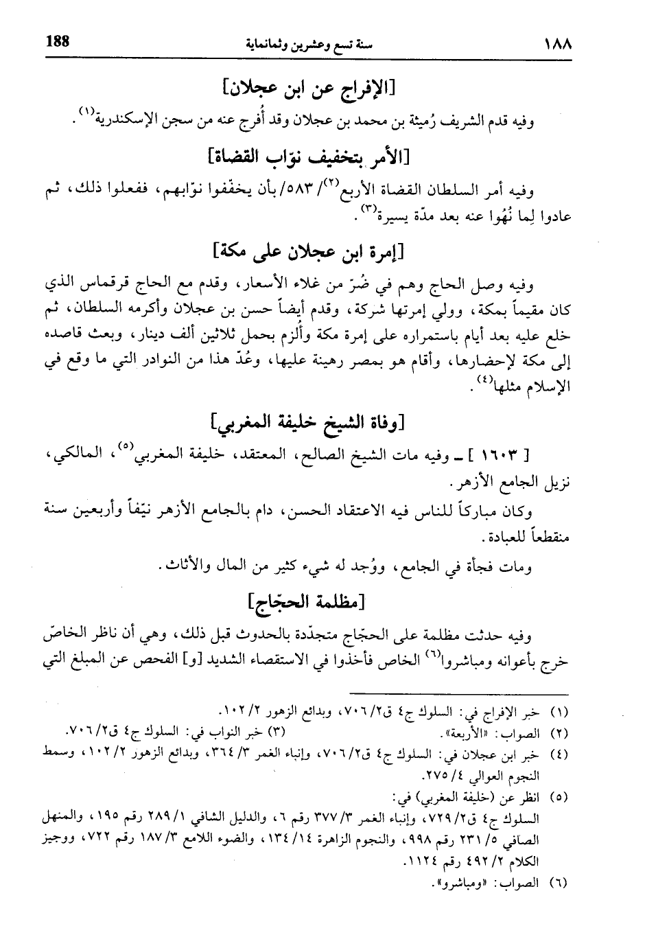 (¬4) خبر ابن عجلان في: السلوك ج 4 ق 2/ 706، وإنباء الغمر 3/ 364، وبدائع الزهور 2/ 102، وسمط النجوم العوالي 4/ 275.