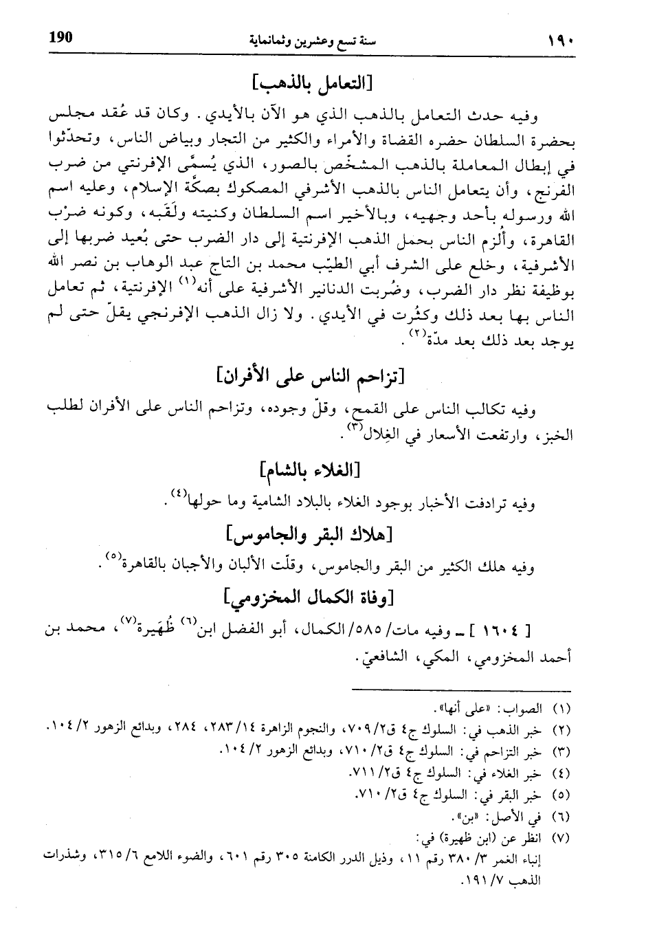 (¬3) خبر التزاحم في: السلوك ج 4 ق 2/ 710، وبدائع الزهور 2/ 104.