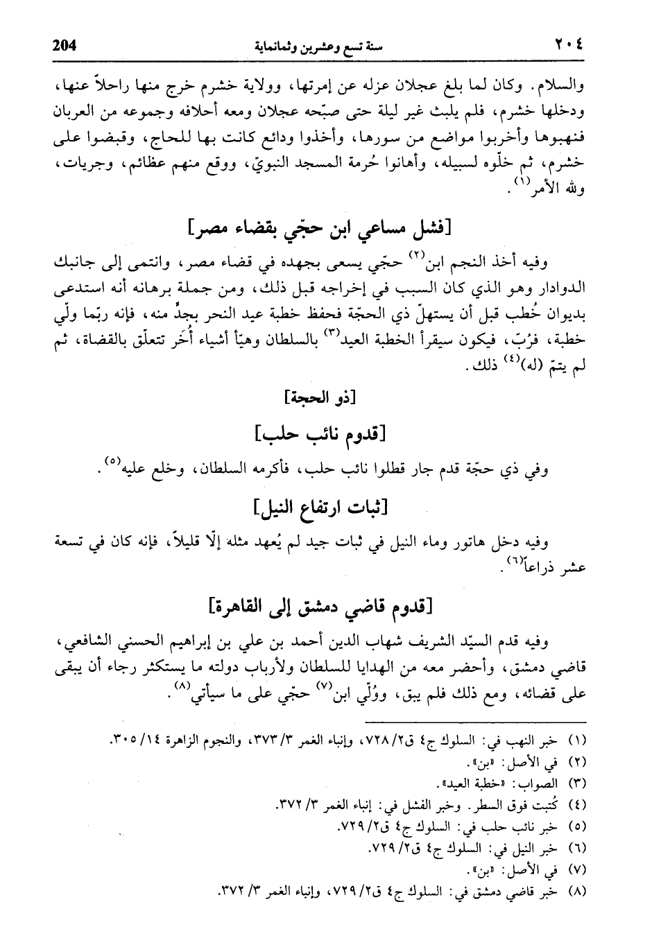 (¬8) خبر قاضي دمشق في: السلوك ج 4 ق 2/ 729، وإنباء الغمر 3/ 372.