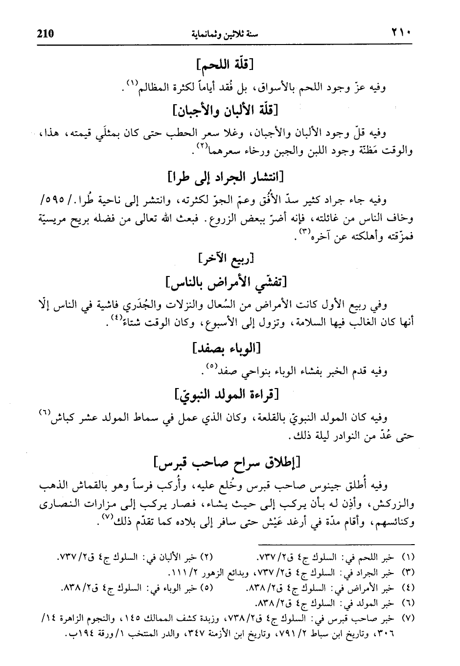 (¬3) خبر الجراد في: السلوك ج 4 ق 2/ 737، وبدائع الزهور 2/ 111.