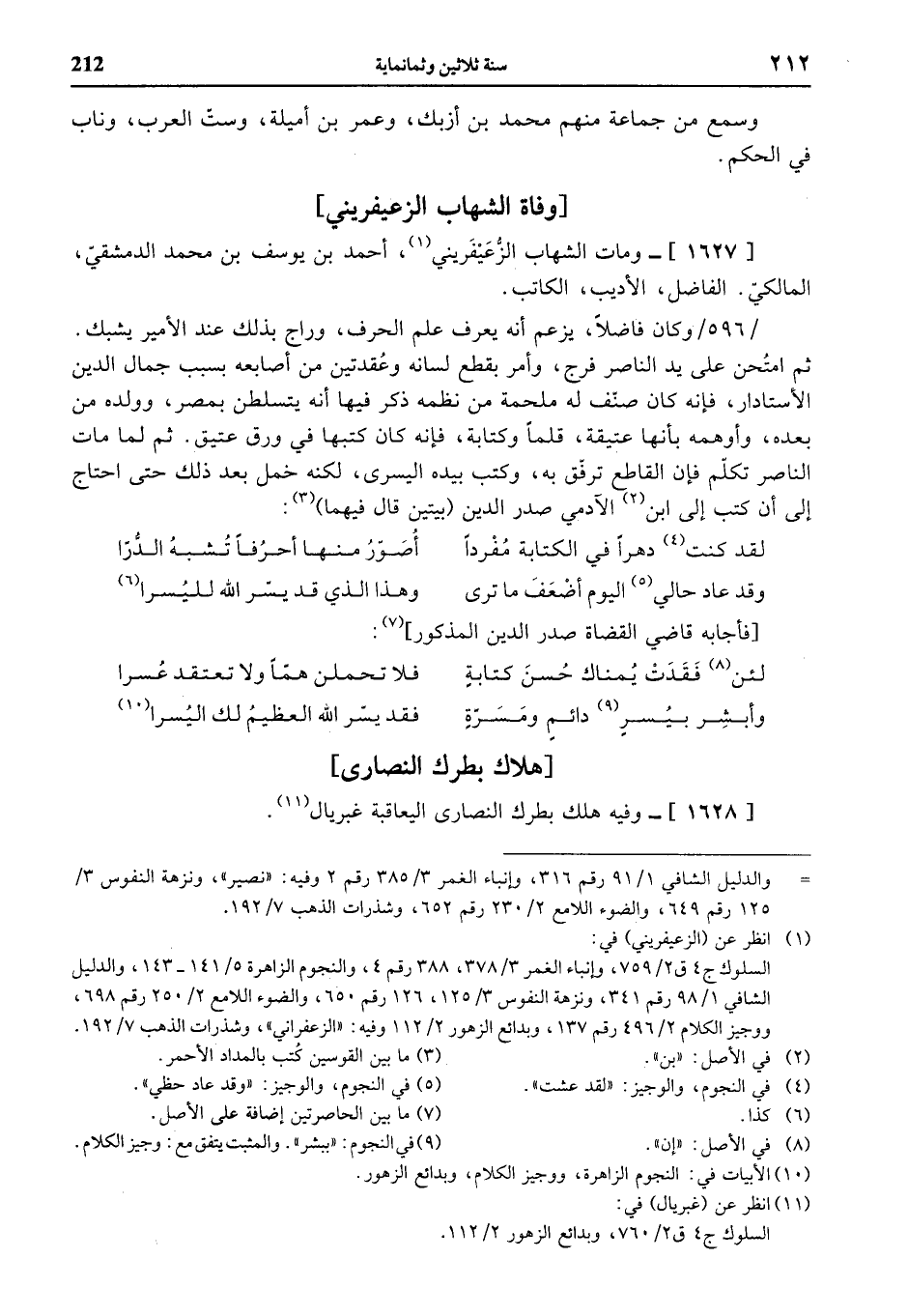 (¬10) الأبيات في: النجوم الزاهرة، ووجيز الكلام، وبدائع الزهور.