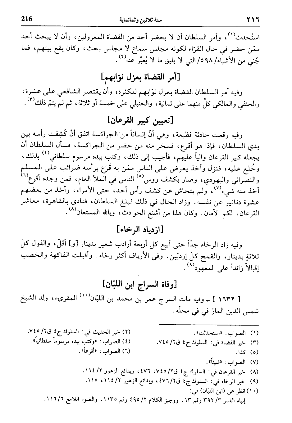 (¬8) خبر القرعان في: السلوك ج 4 ق 2/ 745، 476، وبدائع الزهور 2/ 114.