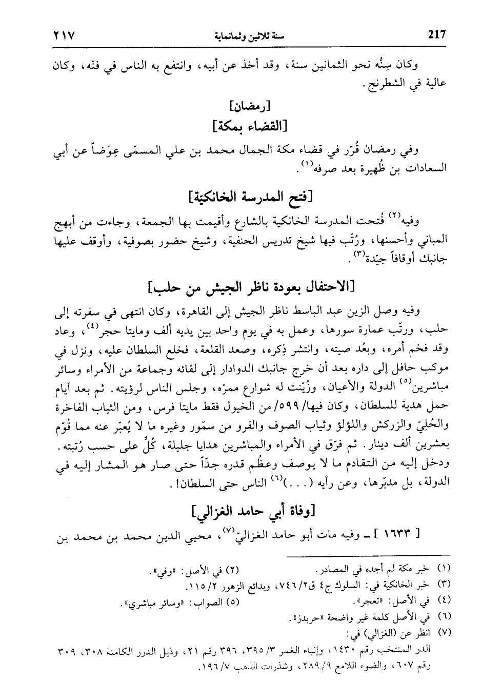 [1633]- وفيه مات أبو حامد الغزاليّ (¬7)، محيي الدين محمد بن محمد بن