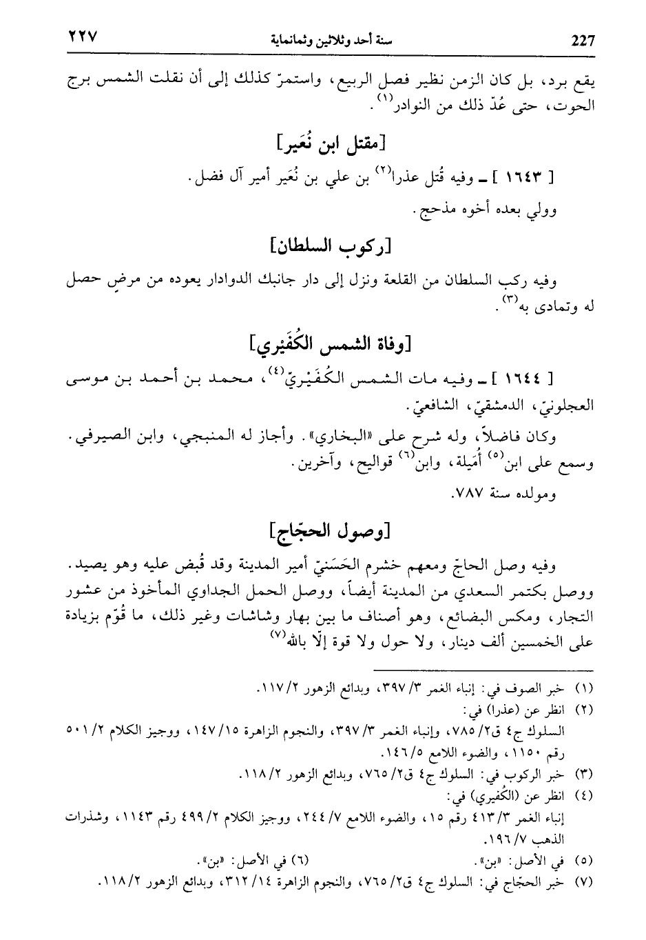 (¬4) انظر عن (الكفيري) في: إنباء الغمر 3/ 413 رقم 15، والضوء اللامع 7/ 244، ووجيز الكلام 2/ 499 رقم 1143، وشذرات الذهب 7/ 196.