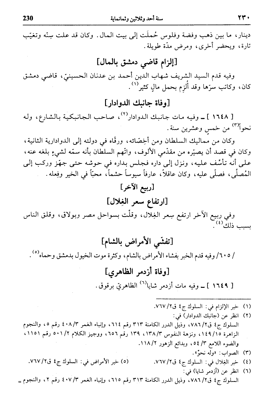 / 605 / وفيه قدم الخبر بفشاء الأمراض بالشام، وكثرة موت الخيول بدمشق وحماه (¬5).