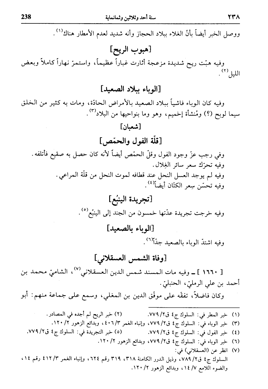 (¬7) انظر عن (العسقلاني) في: السلوك ج 4 ق 2/ 789، وذيل الدرر الكامنة 318، 319 رقم 624، وإنباء الغمر 3/ 412 رقم 14، والضوء اللامع 7/ 14، وبدائع الزهور 2/ 120.