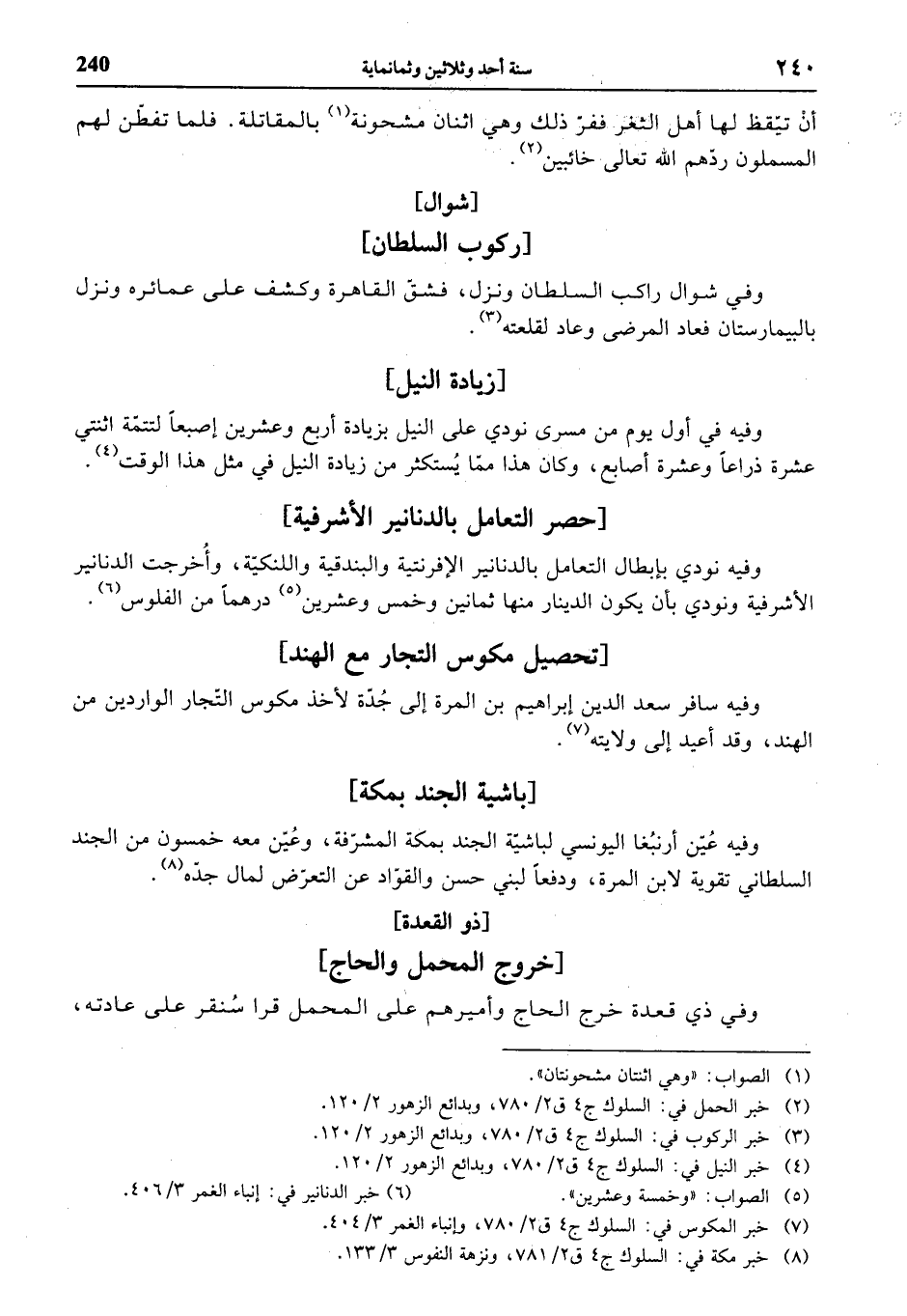(¬3) خبر الركوب في: السلوك ج 4 ق 2/ 780، وبدائع الزهور 2/ 120.