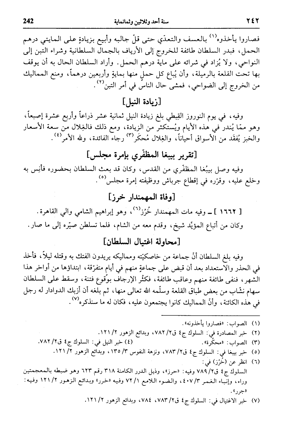 (¬7) خبر الاغتيال في: السلوك ج 4 ق 2/ 783، 784، وبدائع الزهور 2/ 121.