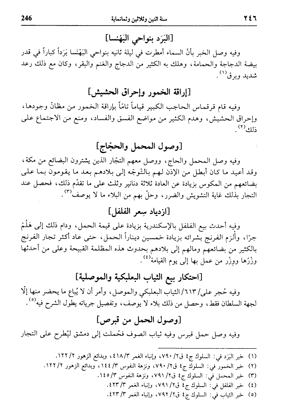 (¬4) خبر الفلفل في: السلوك ج 4 ق 2/ 791، وإنباء الغمر 3/ 423.