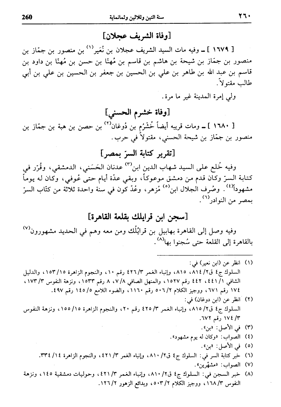 (¬6) خبر كتابة السر في: السلوك ج 4 ق 2/ 810، وإنباء الغمر 3/ 421، والنجوم الزاهرة 14/ 334.