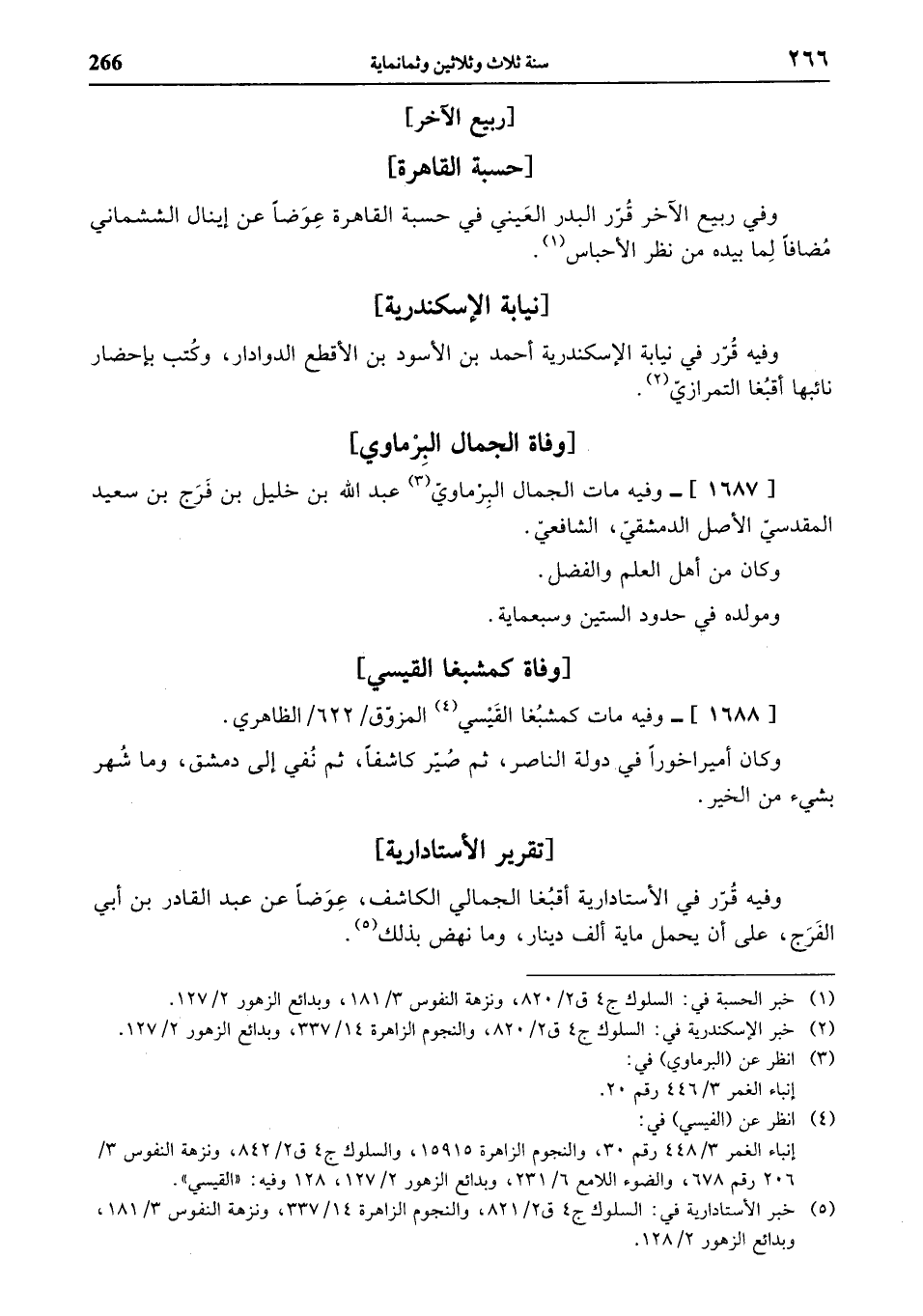(¬5) خبر الأستادارية في: السلوك ج 4 ق 2/ 821، والنجوم الزاهرة 14/ 337، ونزهة النفوس 3/ 181، وبدائع الزهور 2/ 128.