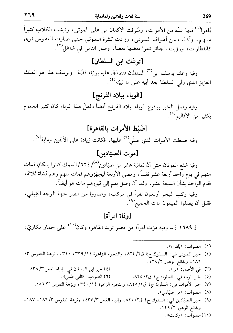 (¬9) خبر الصيّادين في: السلوك ج 4 ق 2/ 825، وإنباء الغمر 3/ 437، ونزهة النفوس 3/ 186، 187، وبدائع الزهور 2/ 129.