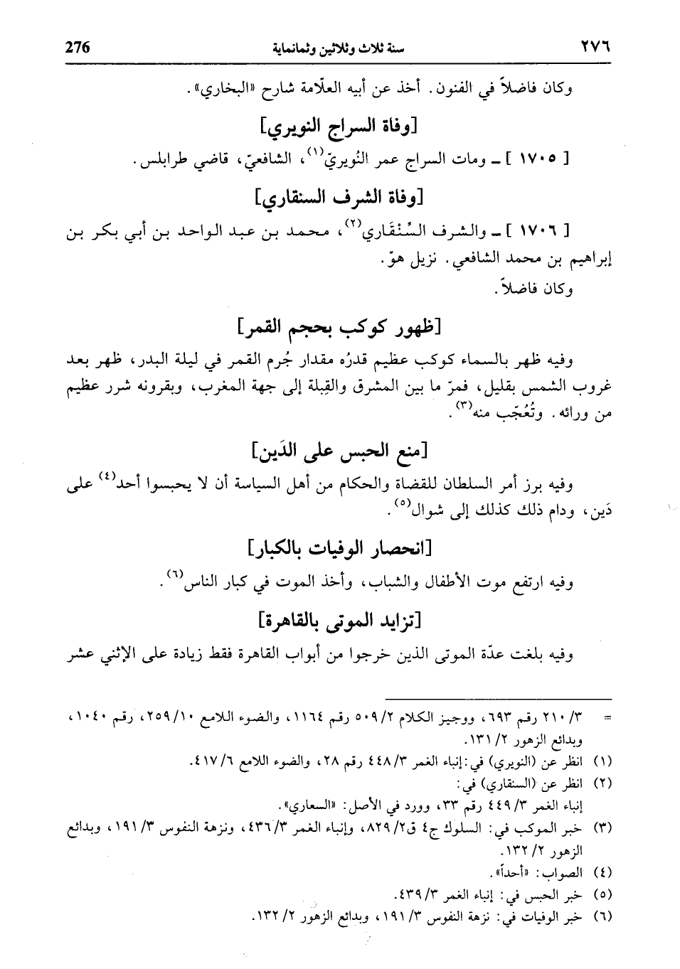 (¬6) خبر الوفيات في: نزهة النفوس 3/ 191، وبدائع الزهور 2/ 132.