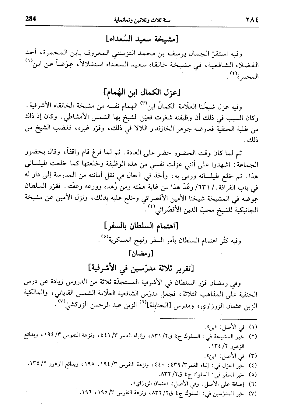 (¬2) خبر المشيخة في: السلوك ج 4 ق 2/ 831، وإنباء الغمر 3/ 441، ونزهة النفوس 3/ 194، وبدائع الزهور 2/ 134.