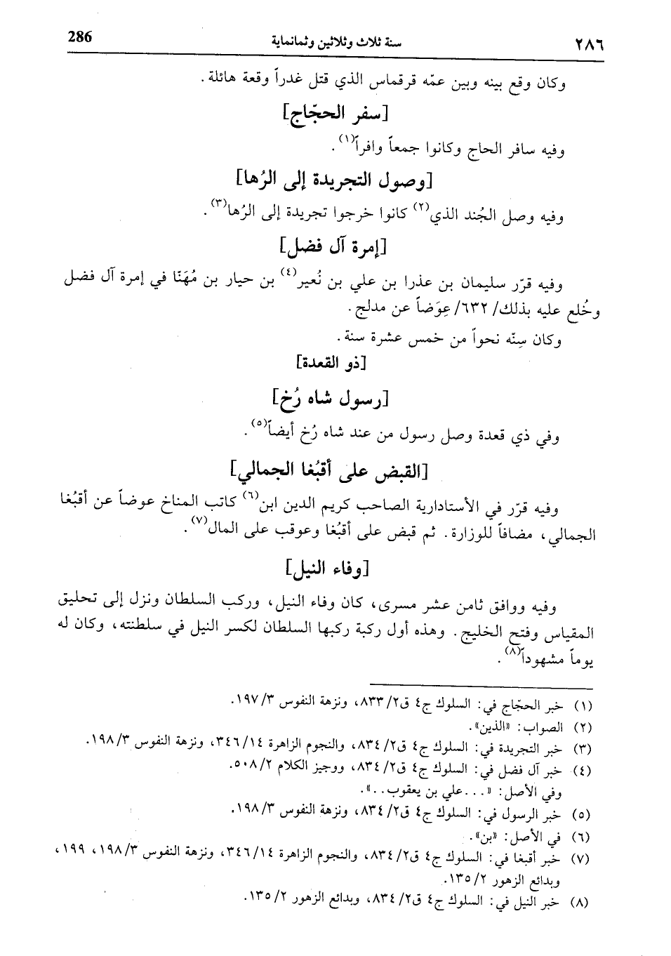 (¬8) خبر النيل في: السلوك ج 4 ق 2/ 834، وبدائع الزهور 2/ 135.