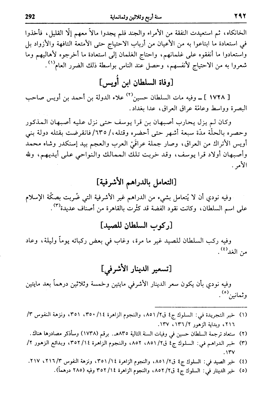 (¬2) ستعاد ترجمة السلطان حسين في وفيات السنة التالية 835 هـ. برقم (1738) وسأذكر مصادرها هناك.