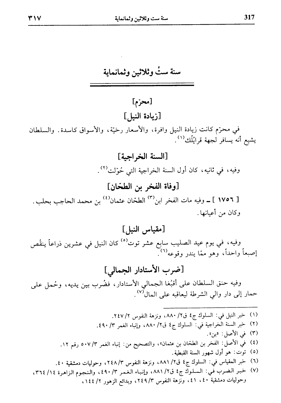 (¬6) خبر المقياس في: السلوك ج 4 ق 2/ 881، ونزهة النفوس 3/ 248، وحوليات دمشقية 40.