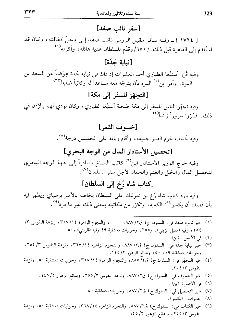 (¬3) خبر نيابة جدّة في: السلوك ج 4 ق 2/ 887، والنجوم الزاهرة 14/ 367، ونزهة النفوس 3/ 254، وحوليات دمشقية 49، 50، وبدائع الزهور 2/ 145.