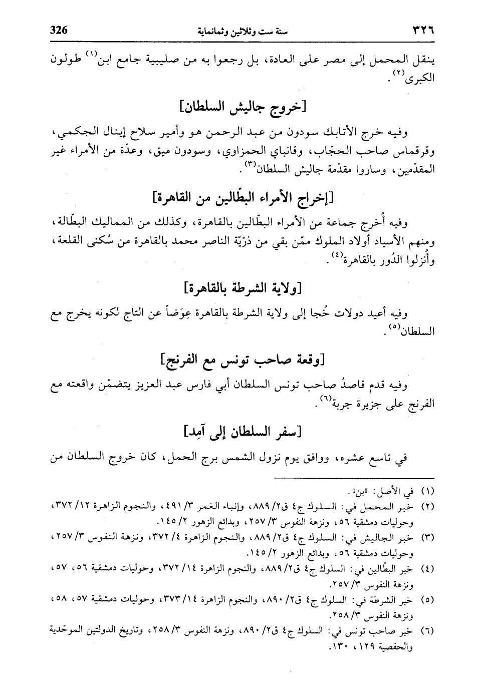 (¬5) خبر الشرطة في: السلوك ج 4 ق 2/ 890، والنجوم الزاهرة 14/ 373، وحوليات دمشقية 57، 58، ونزهة النفوس 3/ 258.