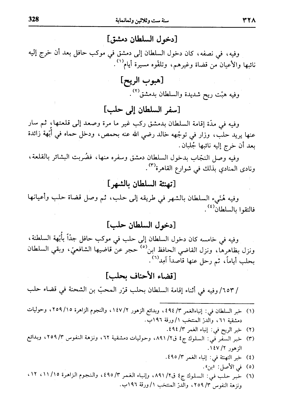 (¬6) خبر حلب في: السلوك ج 4 ق 2/ 891، وإنباء الغمر 3/ 495، والنجوم الزاهرة 15/ 11، 12، ونزهة النفوس 3/ 259، والدرّ المنتخب 1 / ورقة 196 ب.