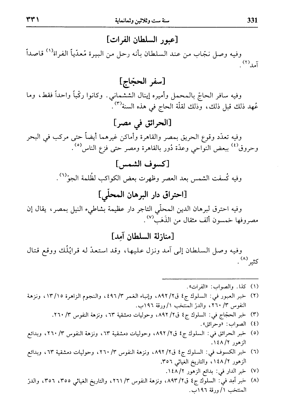 (¬6) خبر الكسوف في: السلوك ج 4 ق 2/ 892، ونزهة النفوس 3/ 260، وحوليات دمشقية 63، وبدائع الزهور 2/ 148، والتاريخ الغياثي 356.