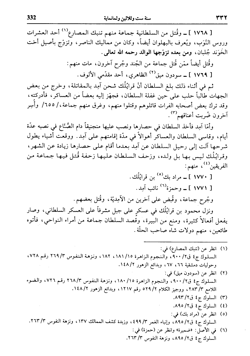 (¬5) انظر عن (مراد بك) في: السلوك ج 4 ق 2/ 895، وإنباء الغمر 3/ 499، وزبدة كشف الممالك 137، ونزهة النفوس 3/ 263.
