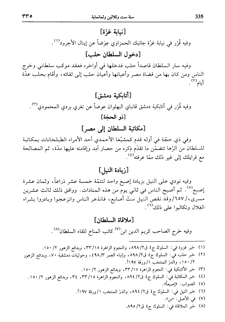 (¬2) خبر حلب في: السلوك ج 4 ق 2/ 898، وإنباء الغمر 3/ 498، وحوليات دمشقية 70، وبدائع الزهور 2/ 150، والدرّ المنتخب 1 / ورقة 197 أ.