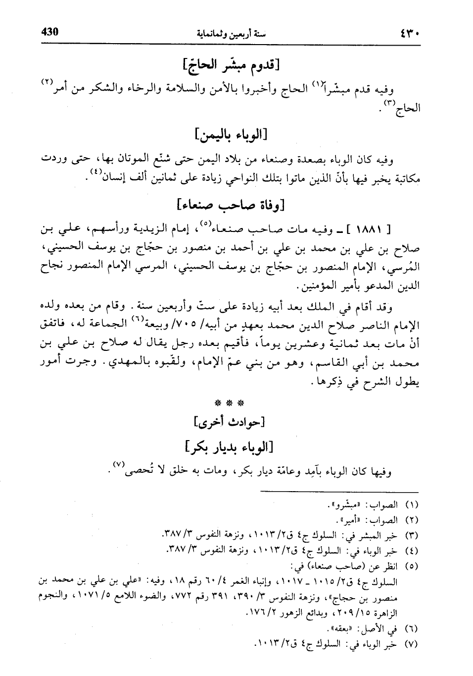 (¬7) خبر الوباء في: السلوك ج 4 ق 2/ 1013.