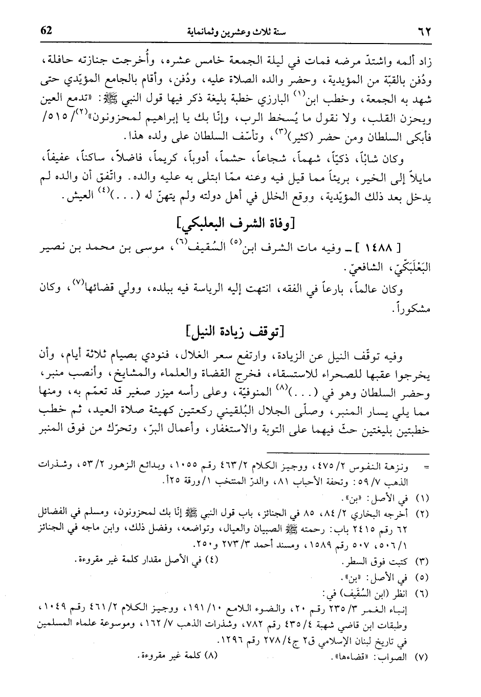 [1488]- وفيه مات الشرف ابن (¬5) السقيف (¬6)، موسى بن محمد بن نصير البعلبكّيّ، الشافعيّ.