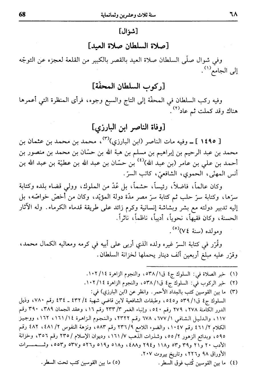وفي شوال صلّى السلطان صلاة العيد بالقصر بالكبير من القلعة لعجزه عن التوجّه إلى الجامع (¬1).