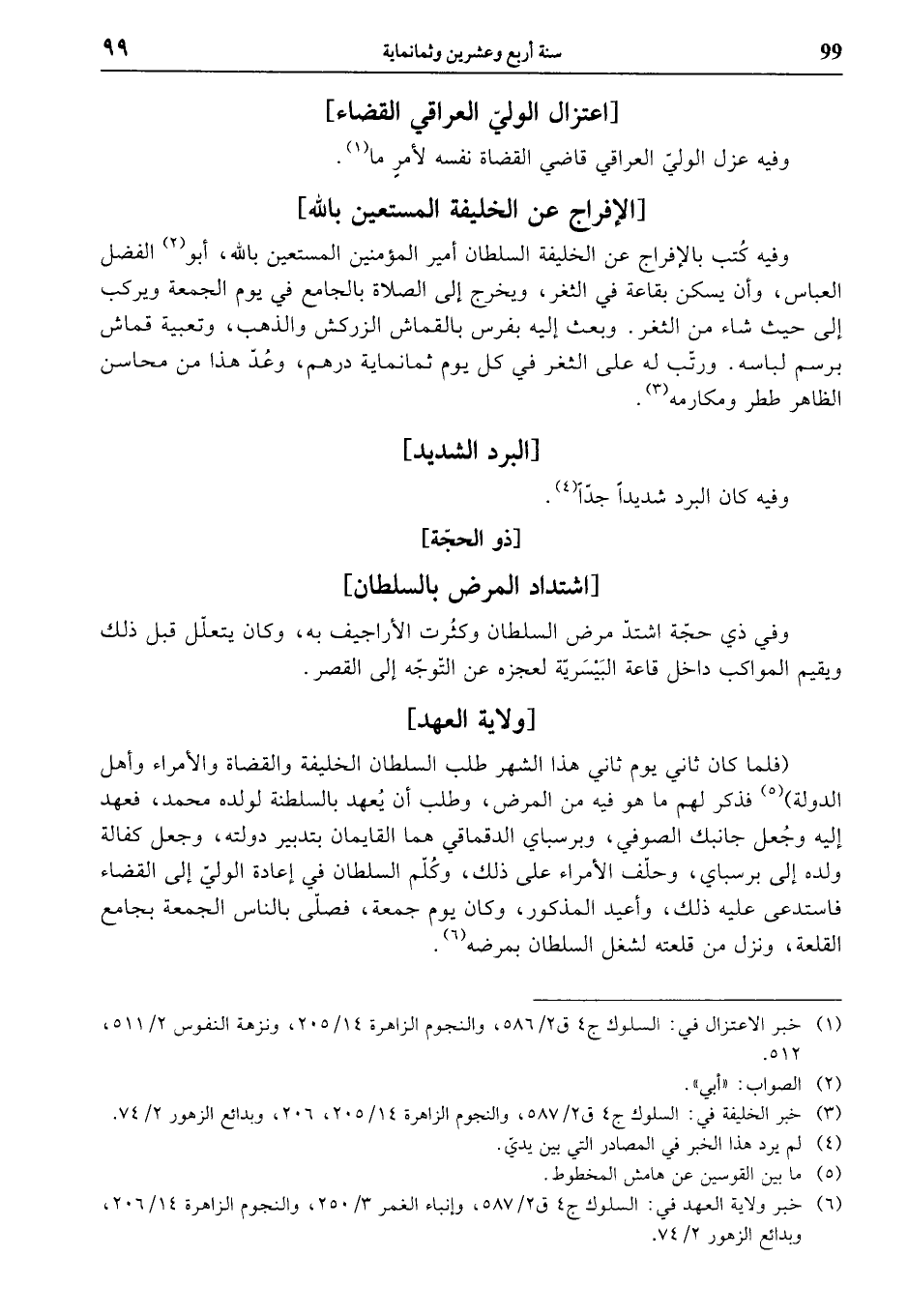 (¬3) خبر الخليفة في: السلوك ج 4 ق 2/ 587، والنجوم الزاهرة 14/ 205، 206، وبدائع الزهور 2/ 74.