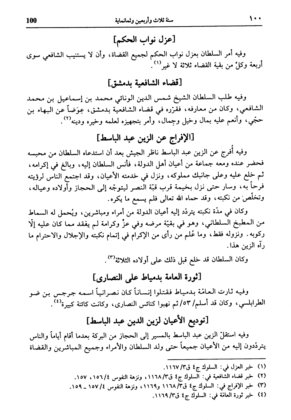 (¬2) خبر قضاء الشافعية في: السلوك ج 4 ق 3/ 1168، ونزهة النفوس 4/ 156، 157.
